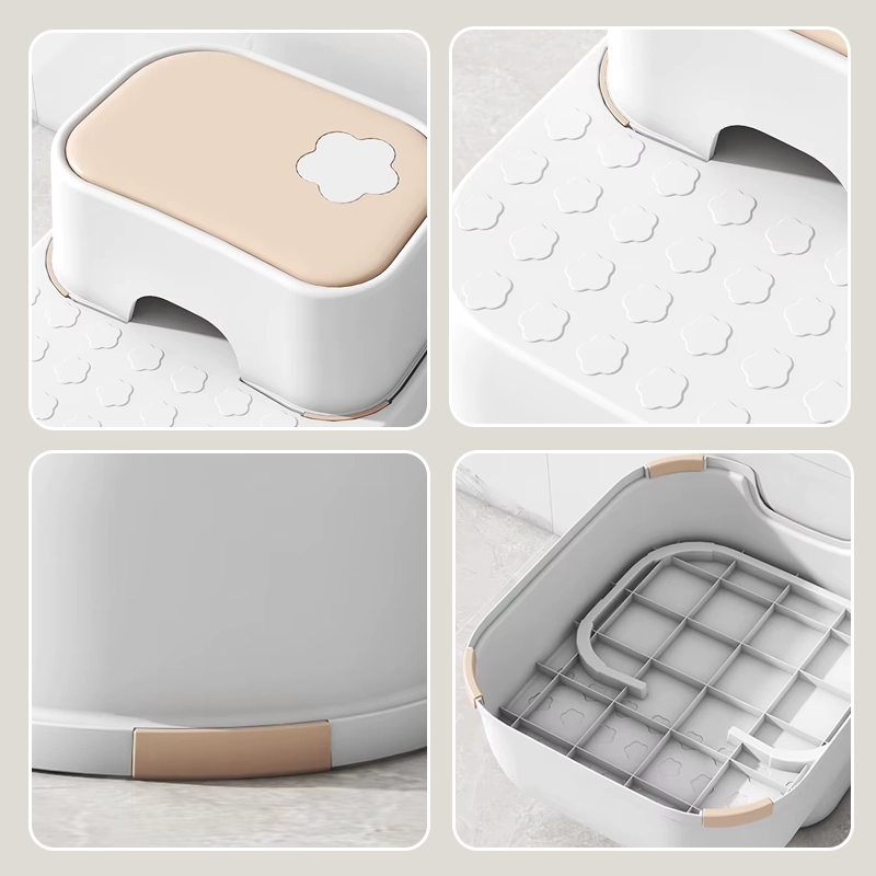 Die Anti-Rutsch-Basis gibt mir ein gutes Gefühl. Mein Sohn rutscht selbst dann nicht aus, wenn er es eilig hat. Super hilfreich für selbstständige Kinder.