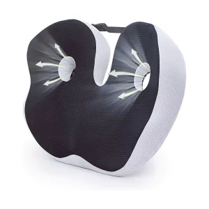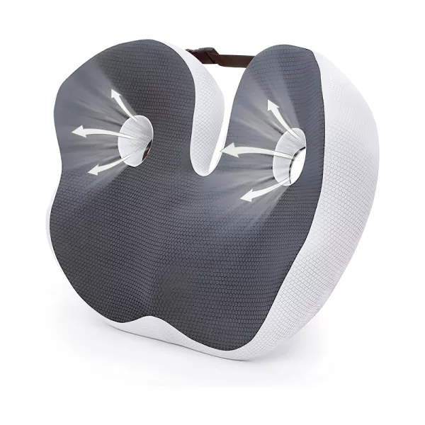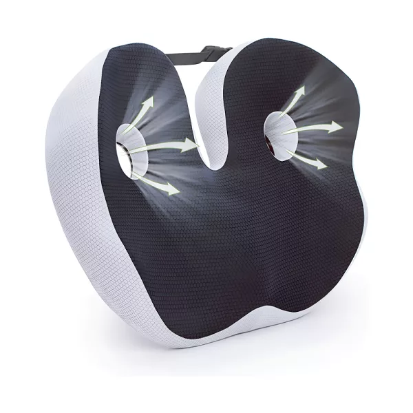 Dieses Kissen zur Arbeit und zurück zu tragen ist einfach, und mein Rücken schmerzt viel weniger. Die Form macht es super bequem, stundenlang zu sitzen.