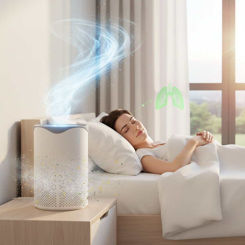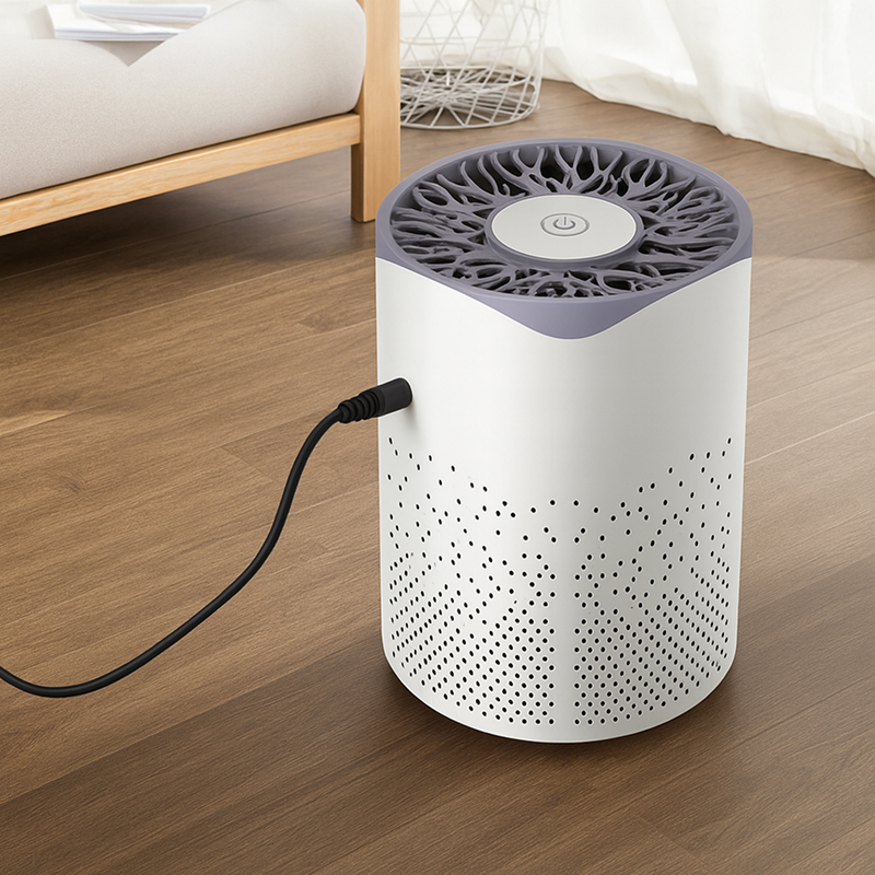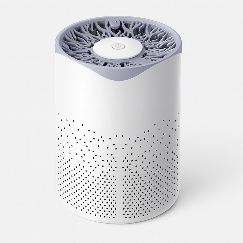 Der kleine Luftreiniger passt perfekt auf meinen Schreibtisch und lässt mein Zimmer super frisch wirken. Ich liebe es, wie jede Nacht friedlich und sauber ist.