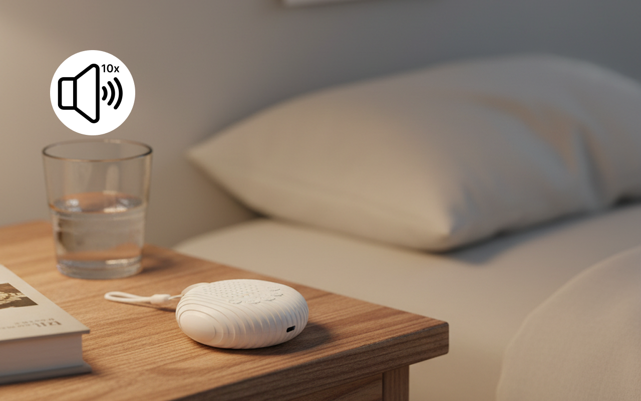 Hätte nie gedacht, dass portables White Noise so nützlich ist. Ich nehme sie mit ins Flugzeug, Auto und benutze sie sogar im Hotel. Super praktisch für leichte Schläfer.