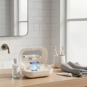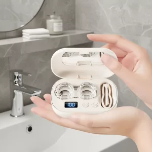 Passt genau in meine Tasche und sieht auch cool aus. Es ist so schnell! Ich kann meine Kontaktlinsen reinigen, während ich mich morgens fertig mache.
