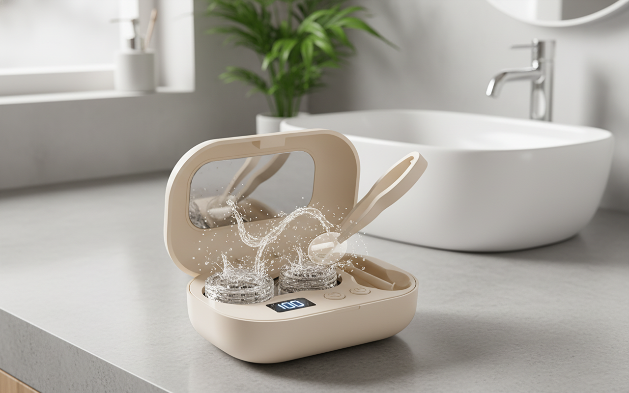 Hochfrequente Ultraschallwellen entfernen Protein- und Staubablagerungen schnell. Kein Reiben nötig, damit die Linsen sicher und klar bleiben.