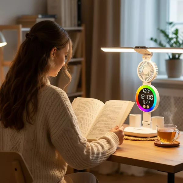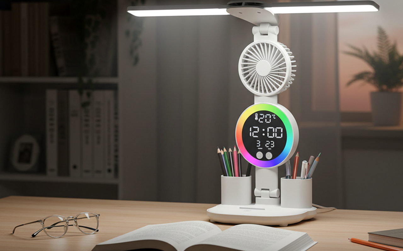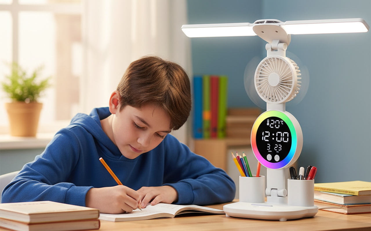 Der Ventilator ist leise, hält mich aber kühl, und das Licht ist genau richtig für spätes Lernen. Absolut empfehlenswert!