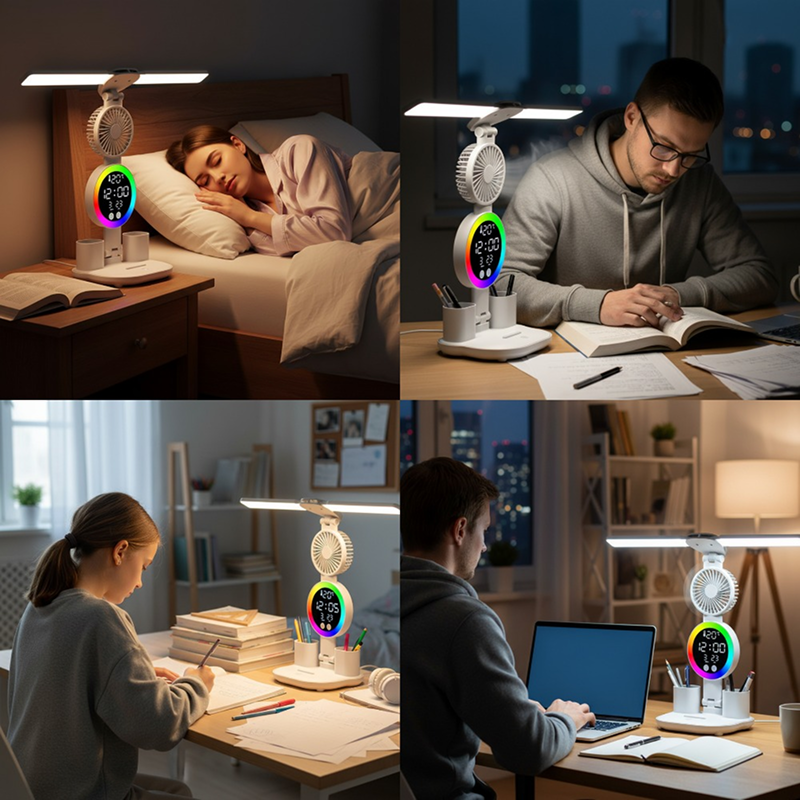 Der Ventilator ist leise, hält mich aber kühl, und das Licht ist genau richtig für spätes Lernen. Absolut empfehlenswert!