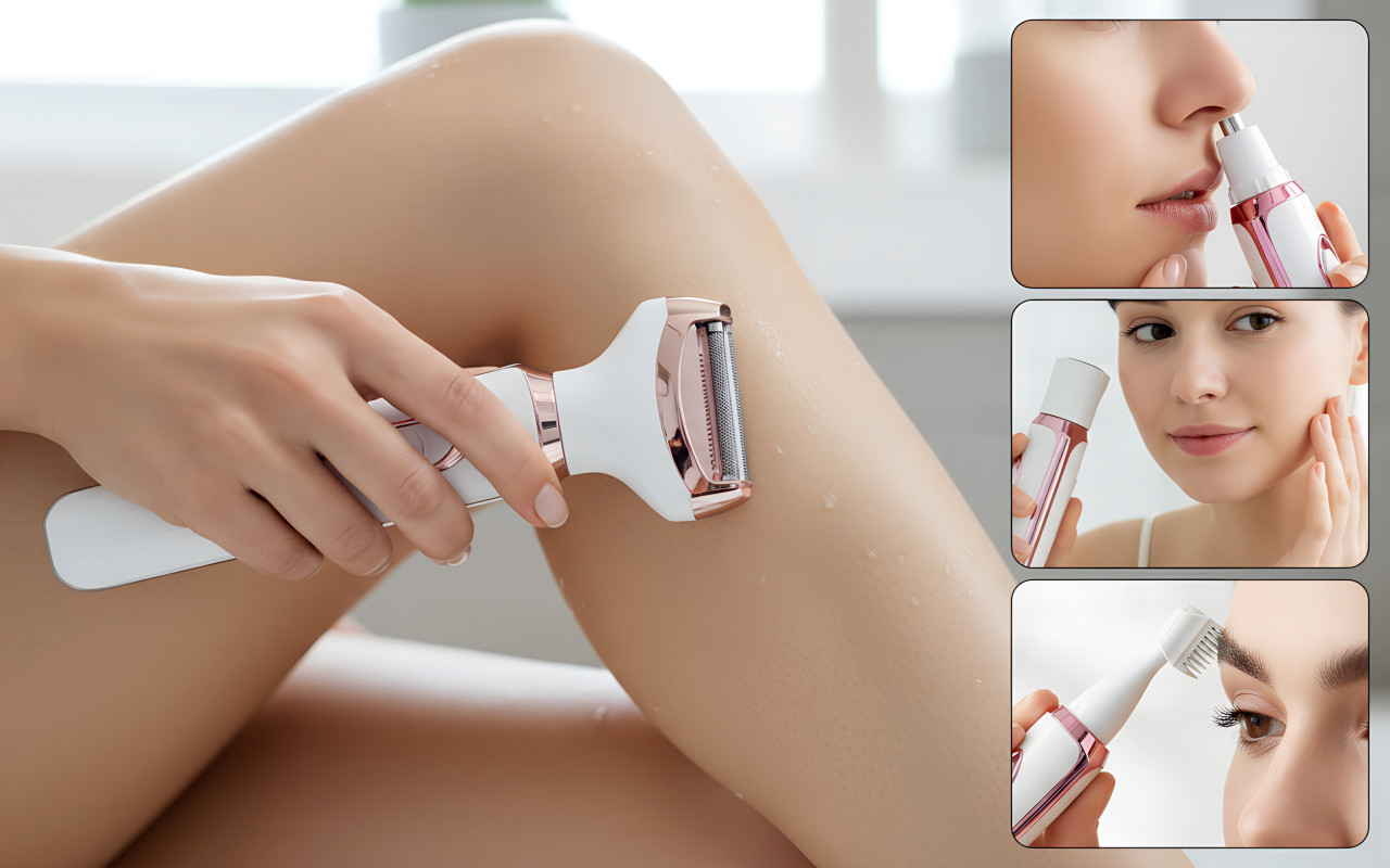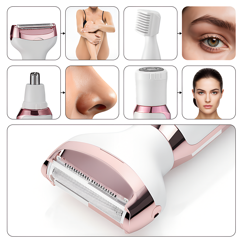 Wechseln Sie zwischen vier Aufsätzen für jeden Pflegebedarf. Gesicht, Nase, Beine und mehr sehen immer in wenigen Minuten ordentlich aus.
