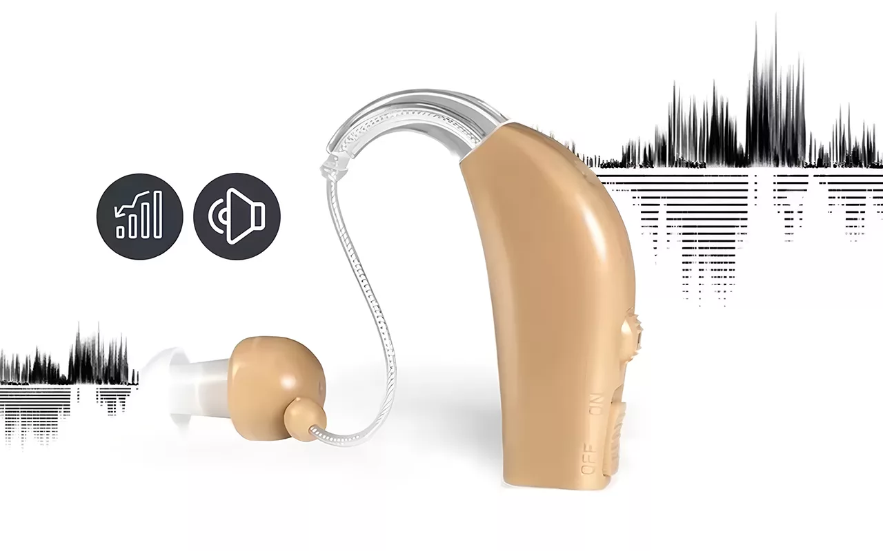 Unser Hörgerät filtert Hintergrundgeräusche heraus und macht Stimmen leicht verständlich.
