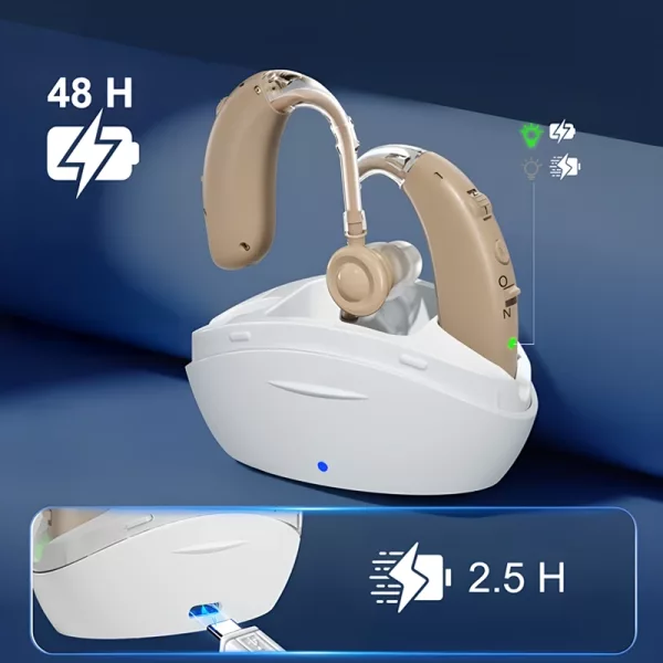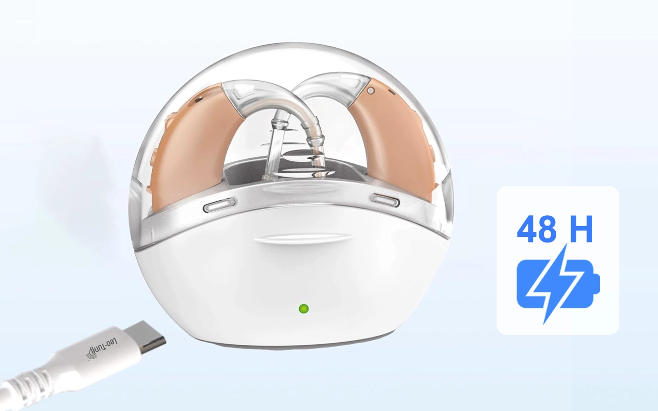Das tägliche Tragen dieses Geräts hilft mir, das Lachen meiner Enkelkinder wieder zu hören. Der Akku hält sehr lange und das Aufladen geht super schnell. Fühlt sich den ganzen Tag bequem an.