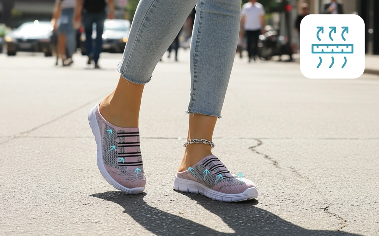 Nach einem langen Tag hineinschlüpfen fühlt sich wie eine Belohnung an. Das Mesh hält meine Socken trocken und ich kann sie den ganzen Abend tragen, ohne Unbehagen.