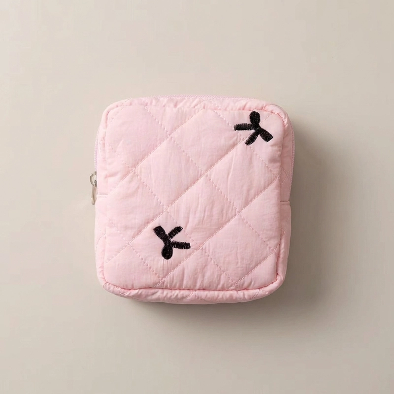Süßes Design und es passt mehr hinein als nur Binden. Ich bewahre auch etwas Kleingeld und feuchte Tücher darin auf. Wirklich praktisch.