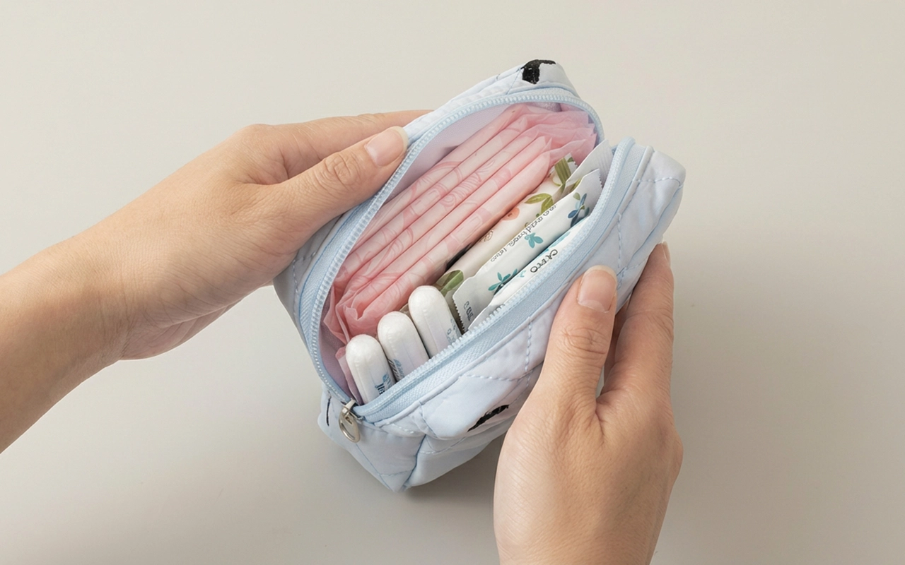 Dieses kleine Täschchen rettet mich jedes Mal, wenn ich schnell wechseln muss. Passt problemlos in meine Tasche und niemand merkt, was drin ist.