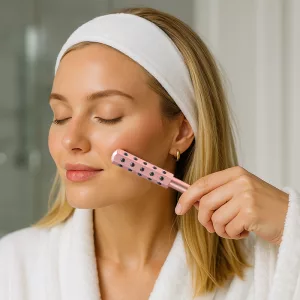 Der Stab hilft dabei, meine Kieferlinie zu glätten und lässt meine Haut strahlender aussehen. Ich benutze ihn morgens und abends und liebe die Veränderung.