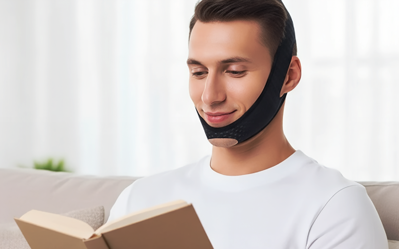 Der dehnbare Stoff ist wirklich angenehm und hinterlässt keine Abdrücke. Ich trage es während der Hausaufgaben und mein Kiefer sieht jetzt viel definierter aus.