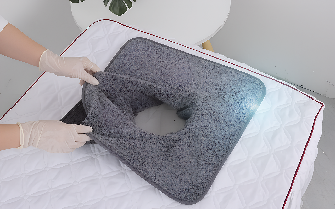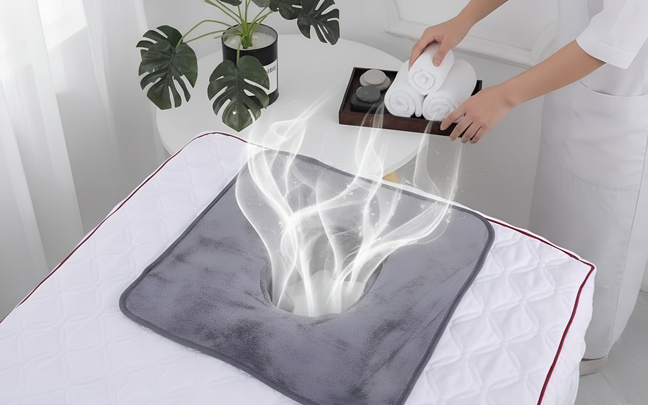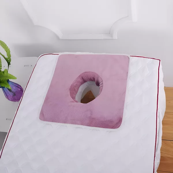 Dieses Tuch für Massagesitzungen fühlt sich super weich an. Das Gesichtsfeld ist perfekt geformt und es verrutscht nicht, wenn die Kunden sich hinlegen.