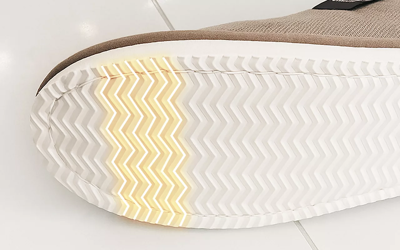 Strukturierte Sohlen sorgen für Stabilität auf Holz-, Fliesen- oder Teppichböden. Jeder Schritt fühlt sich sicher an, hilft Stürze im Haus zu vermeiden.