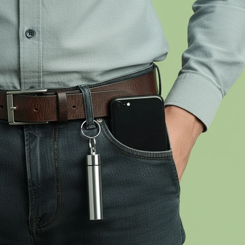 Befestigen Sie das Etui mühelos an Schlüsseln oder Gürtelschlaufen. Nie wieder nach dem Essen nach einem Zahnstocher suchen.