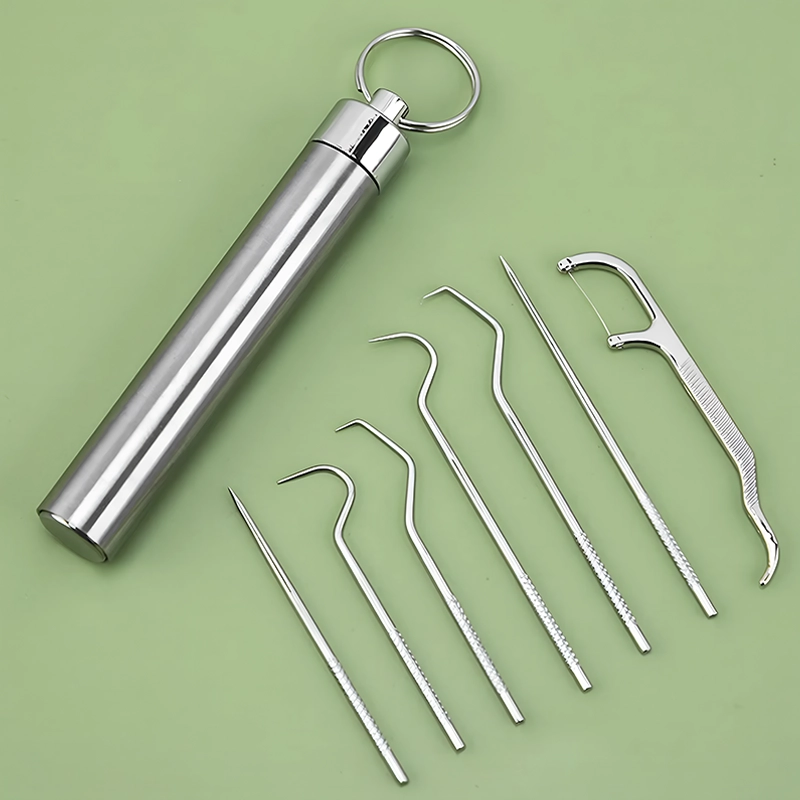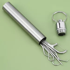 Ich mochte es nie, Zahnseide mitzunehmen, also habe ich diesen Stahl-Zahnstocher ausprobiert. Er ist stabil, leicht zu tragen und mein Mund fühlt sich jedes Mal sauber an.
