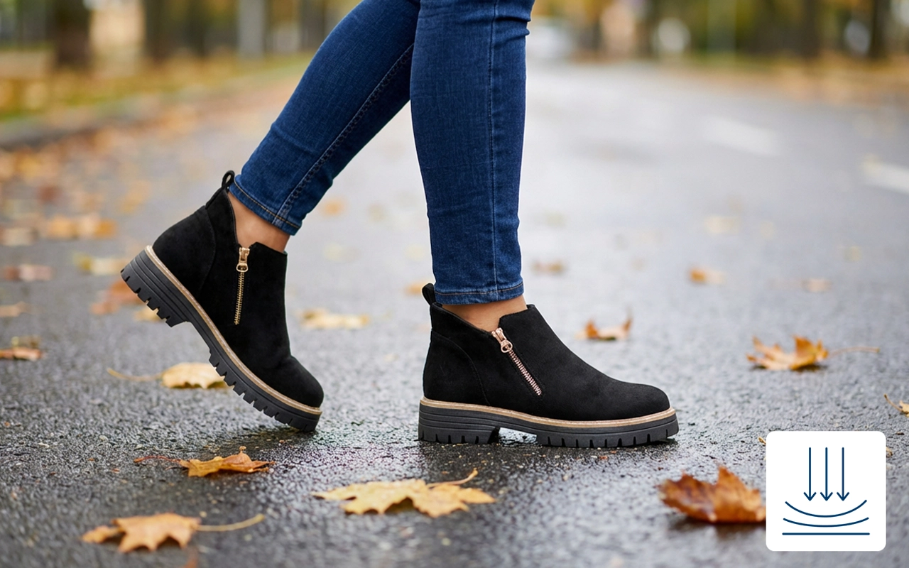 Ich liebe den Grip bei diesen Schuhen – kein Ausrutschen, selbst im Regen. Meine Füße bleiben trocken und das weiche Innenfutter fühlt sich richtig gemütlich an.