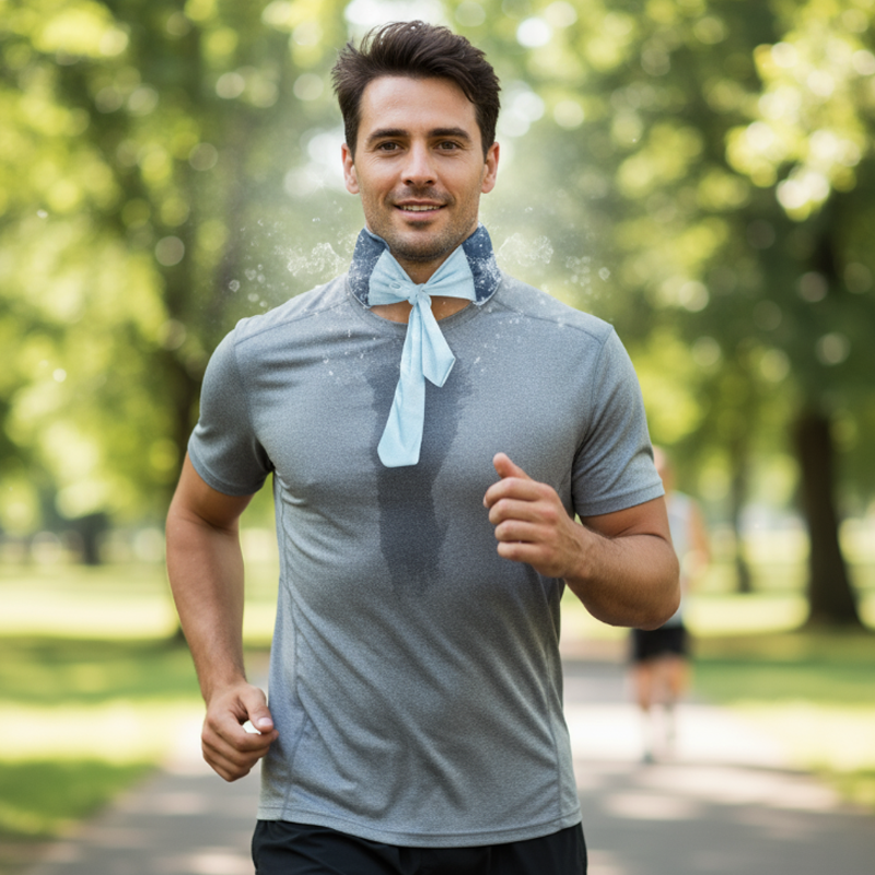 Ich habe dieses Kühlhalstuch bei meinen täglichen Läufen verwendet und fühlte mich die ganze Zeit über angenehm gekühlt. Es ist bequem, leicht wiederzuverwenden und bleibt viel länger kalt, als ich dachte.