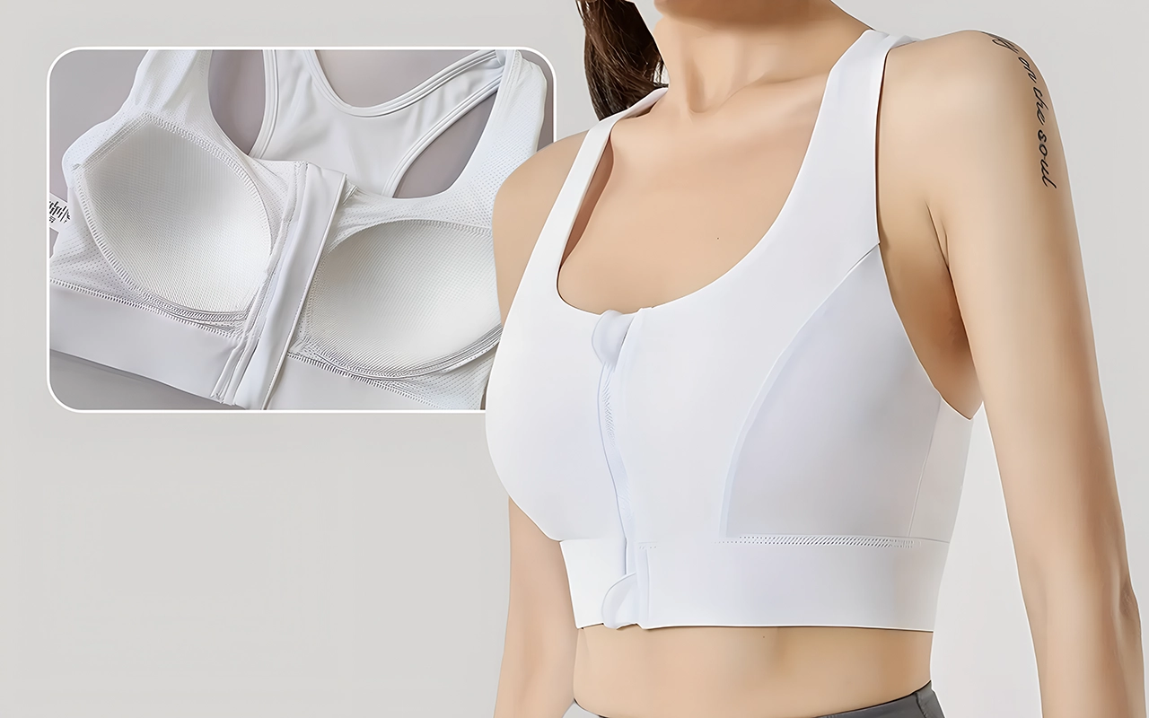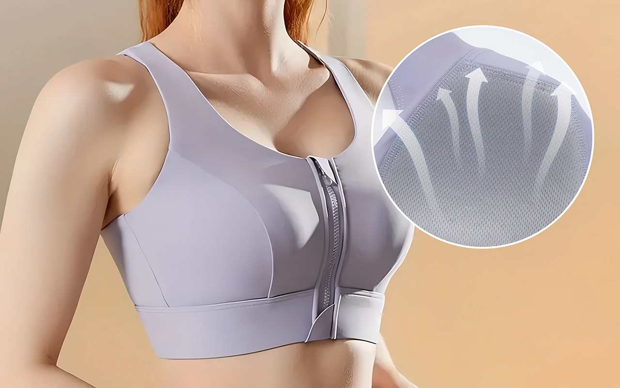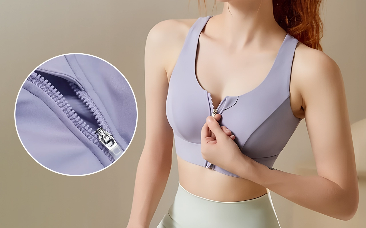 Der Frontreißverschluss macht das Umziehen vor und nach dem Yoga super einfach. Der Halt sorgt dafür, dass alles an seinem Platz bleibt, selbst beim Springen während des Cardiotrainings.