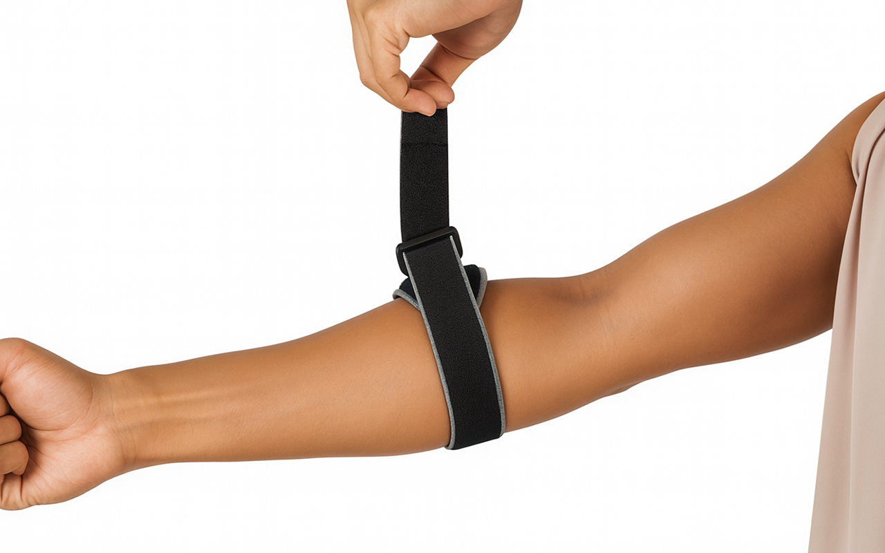 Dieses Band hält meinen Ellbogen den ganzen Tag am Arbeitsplatz bequem. Beim Tippen am Computer schmerzt mein Unterarm nicht mehr wie früher.