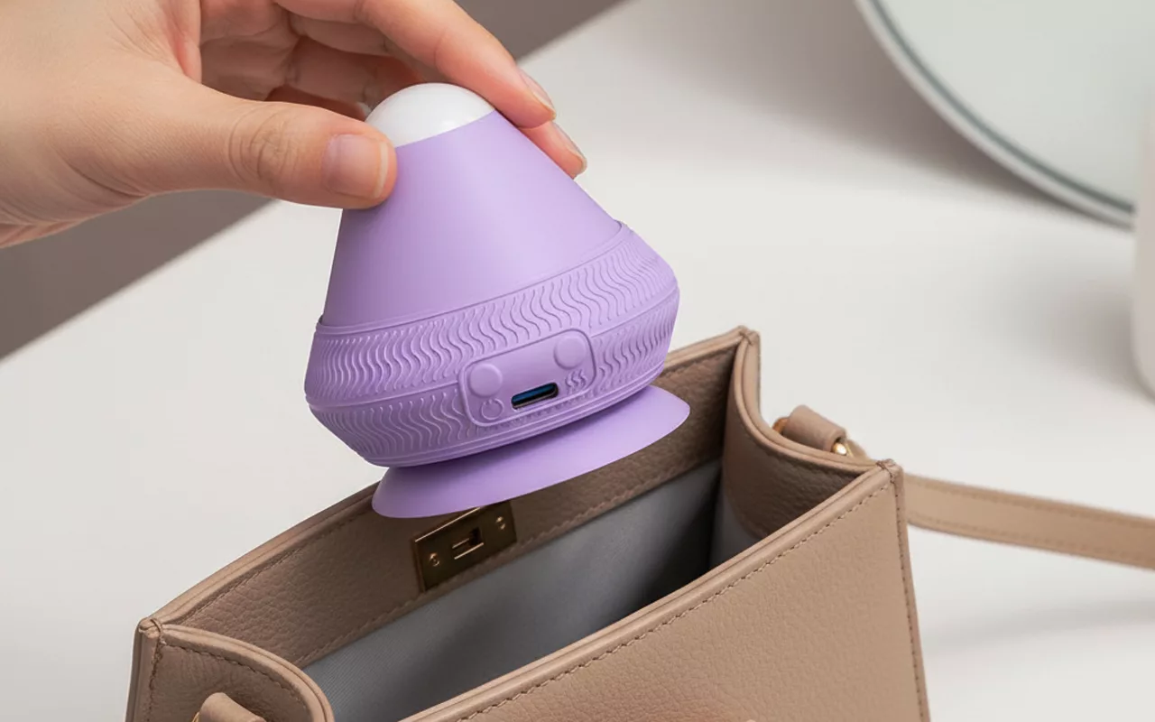 Die kleine Größe passt leicht in Taschen oder Schubladen. Nehmen Sie dieses einfache Entspannungsgerät überall hin mit.