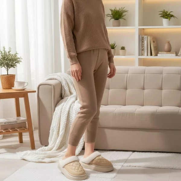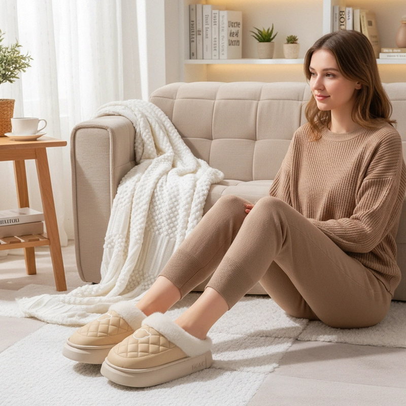 Schlüpfen Sie jeden Morgen in Wärme und genießen Sie sanfte Unterstützung. Verwöhnen Sie müde Füße mit weichem Komfort, der nie schwer wirkt. Die robuste, wasserdichte Sohle sorgt für sicheren und trockenen Halt im Haus. Entspannen Sie sich mit dem Wissen, dass Ihre Zehen selbst an den kältesten Tagen wohlig warm bleiben.