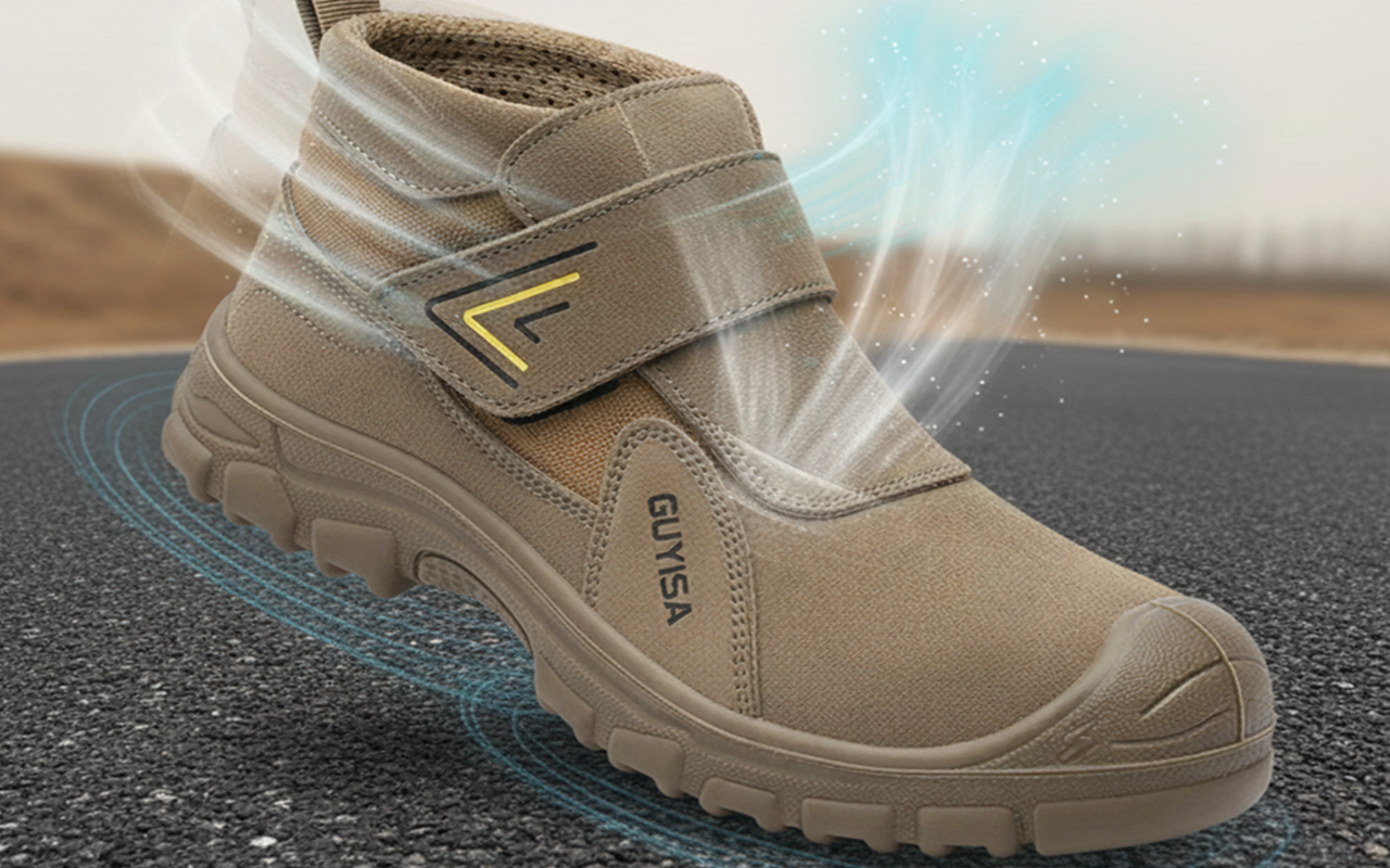 Atmungsaktives Futter hält die Füße bei langen Arbeitsstunden trocken. Flexible Sohlen dämpfen jede Bewegung und reduzieren Ermüdung schnell.