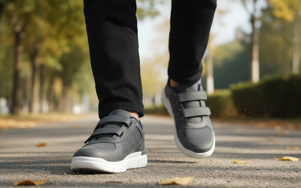 Jeder Schritt fühlt sich sanft an dank eines weichen Innenfutters. Atmungsaktives Mesh hält die Füße bei langen Spaziergängen im Freien kühl. Ein einfach zu bedienender Verschlussriemen ermöglicht jederzeit schnelle Anpassungen. Leichte Materialien machen das Gehen den ganzen Tag mühelos.