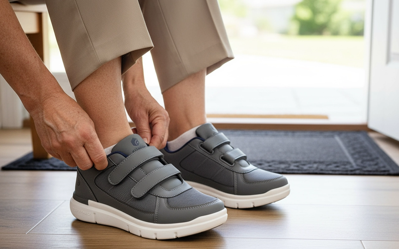 Diese Slipper anzuziehen geht super schnell. Der große Klettverschluss macht es einfach und trotzdem fühlen sie sich sicher an, wenn ich unterwegs bin.