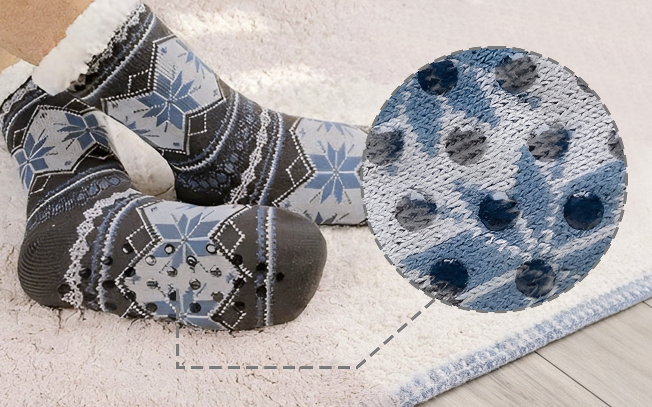 Silikonpunkte verhindern unerwünschtes Ausrutschen auf glatten Oberflächen. Bewegen Sie sich sicher auf Holz- oder Fliesenböden zu Hause.