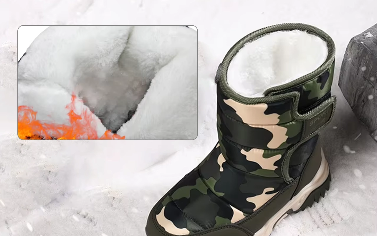 Weiches Plüschfutter umgibt die Füße und speichert schnell die Wärme. Keine Beschwerden mehr über kalte Zehen bei Winterspaziergängen.