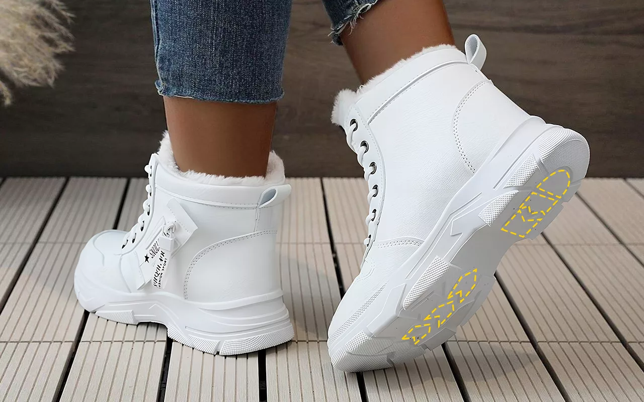 Profilierte Sohle sorgt für sicheren Halt auf eisigen Wegen. Bewege dich selbstbewusst, ohne Angst vor Ausrutschern oder Stürzen.