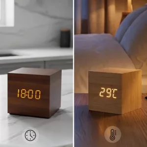 Ich brauche mein Handy nicht mehr für Wecker. Der Holzwürfel ist zuverlässig und hält meinen Bereich ordentlich. Wirklich einfach einzurichten.