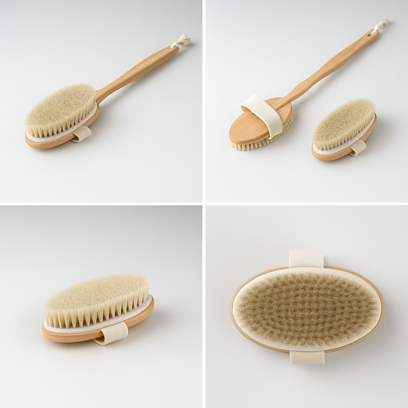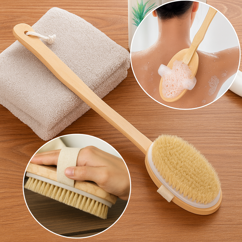 Ich mag, wie natürlich sich die Borsten im Vergleich zu Plastik anfühlen. Je nach Bedarf mit oder ohne Griff. Meine Arme und mein Rücken sind dankbar!