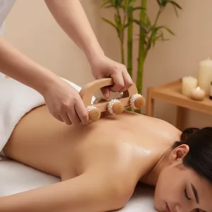 Umweltfreundliche Holzkonstruktion bedeutet, dass keine harten Kunststoffe die Haut berühren. Sanfte Silikonspitzen lassen jede Sitzung entspannend und sicher erscheinen.