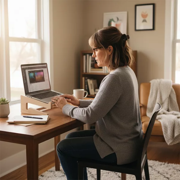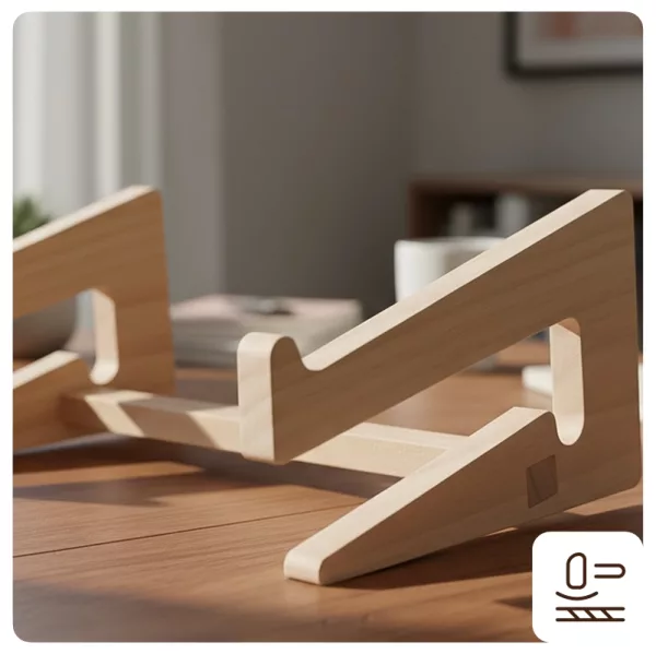 Der hölzerne Orotrex-Ständer fügt sich nahtlos in moderne oder klassische Einrichtungen ein. Er hebt Ihren Laptop an, um die Sichtbarkeit zu verbessern und Nackenverspannungen zu reduzieren.